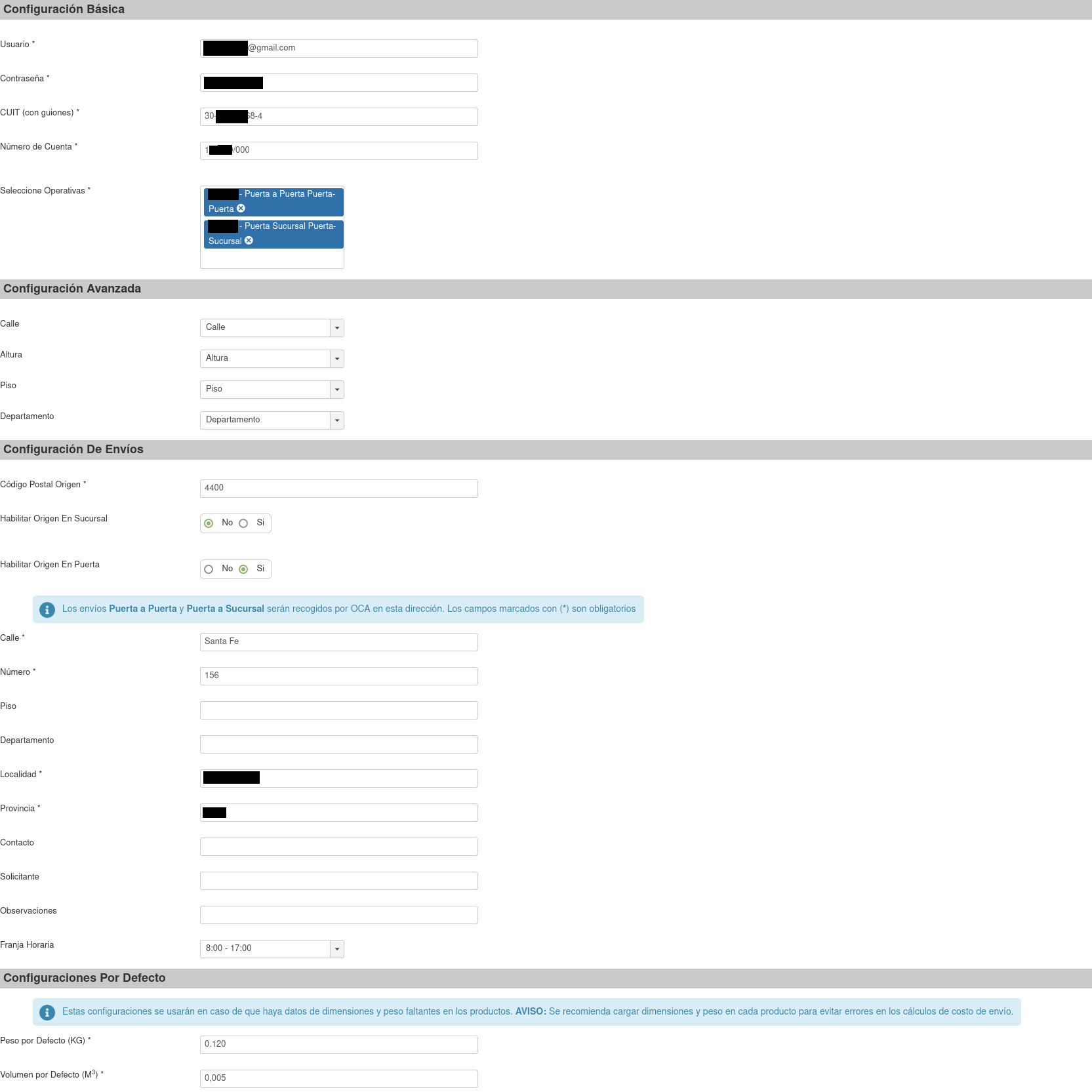 Esta implementación de OCA e-Pak requiere que tenga una cuenta. Por favor, contáctese con OCA e-Pak para obtener mas información 0800-999-7700 o haga click aquí para contactarse con OCA e-Pak